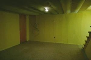 Una vez hayas atravesado el suelo de tu nivel y veas unas escaleras cubiertas por moqueta, sabrás que has encontrado una entrada al Sótano. Una vez bajes por estas escaleras, bastante deterioradas y hechas de madera, te encontrarás en una pequeña habitación con una alfombra ligeramente más oscura que la del Nivel 0. Las paredes de este cuarto, amarillentas, parecen estar hechas por placas y no estar cubiertas de papel de pared. El techo está hecho también de placas metálicas mucho más estrechas y largas.