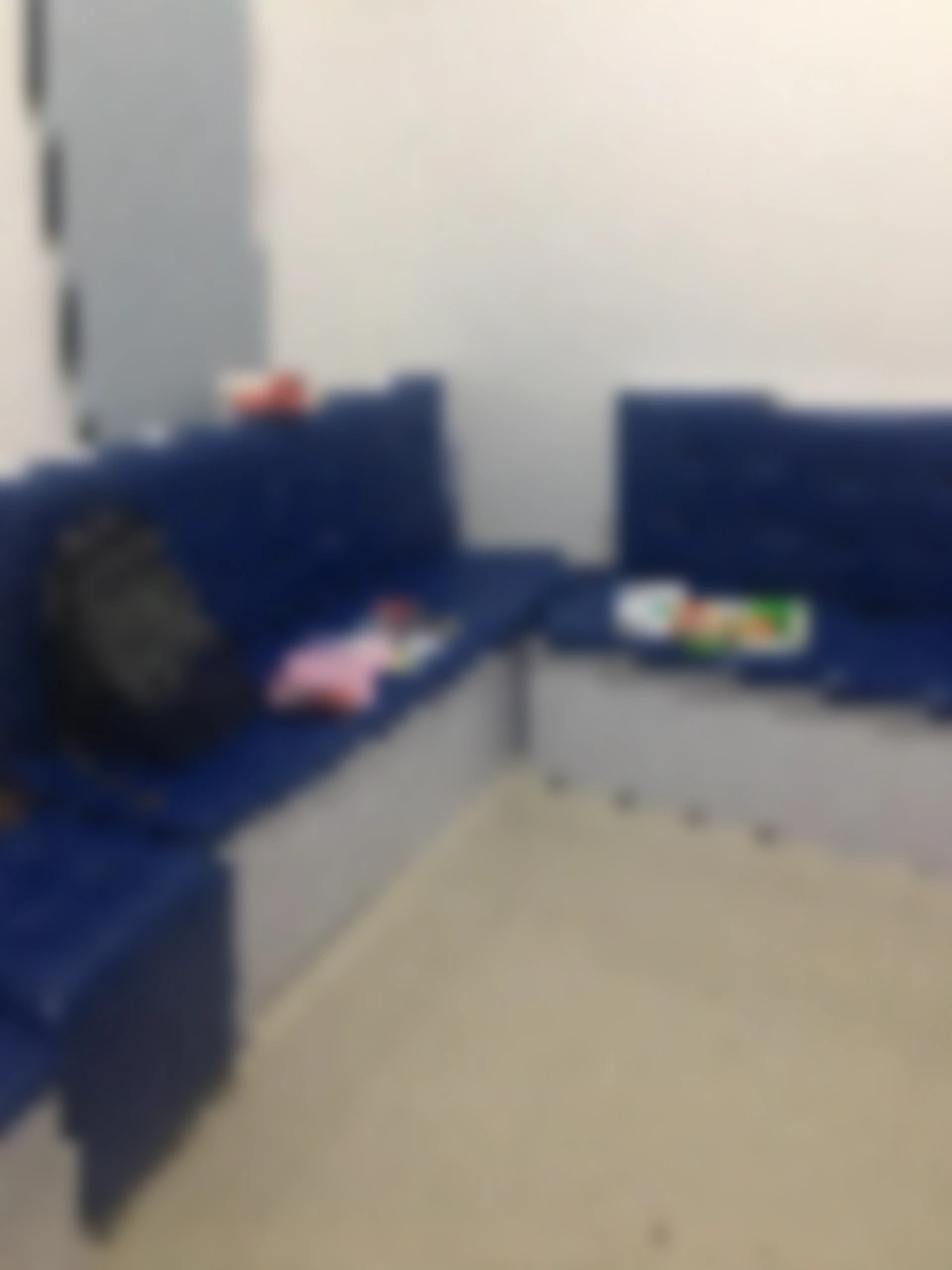 Una foto borrosa de los sofás de Las Habitaciones del Sofá Azul.