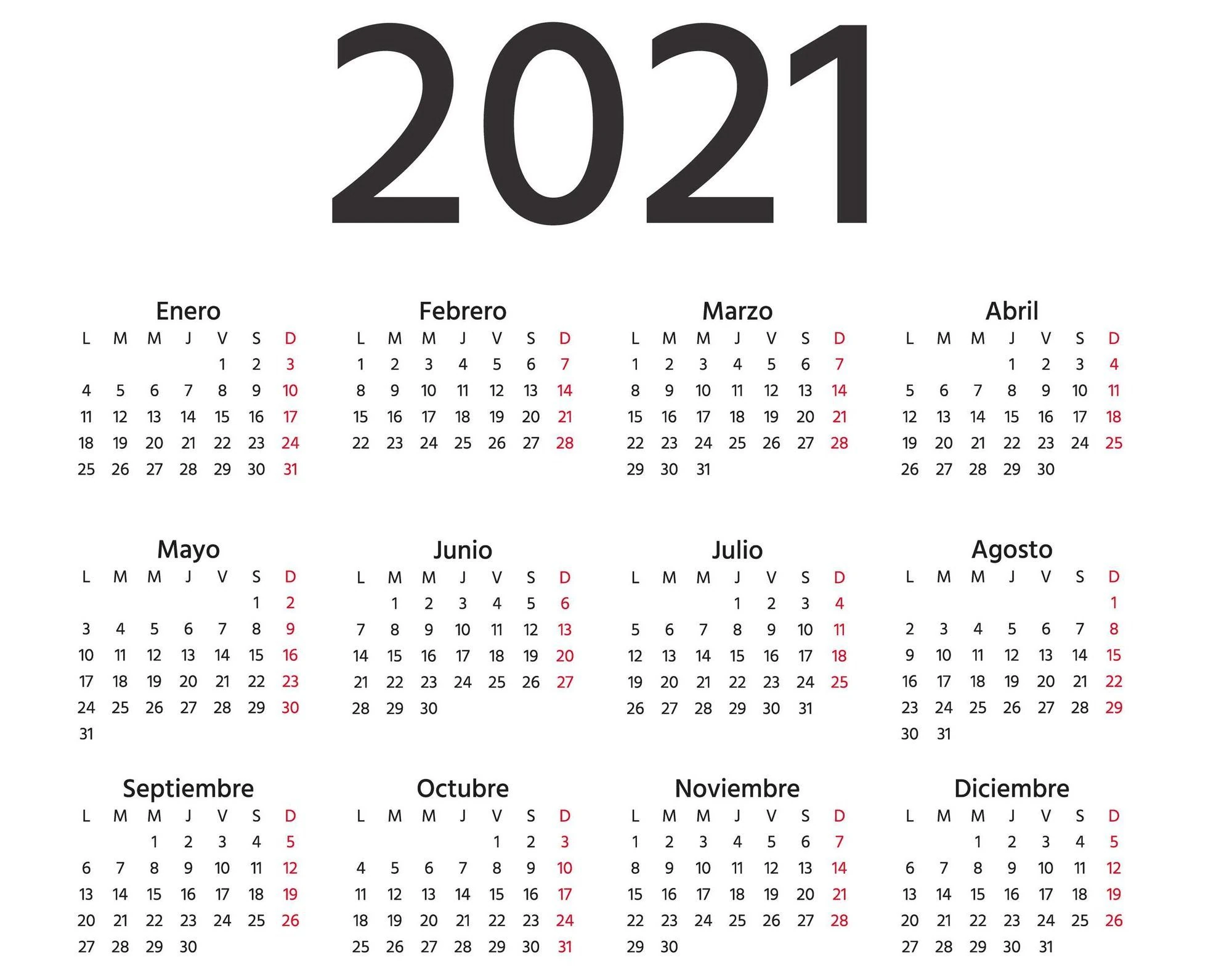 Calendario del 2021.
