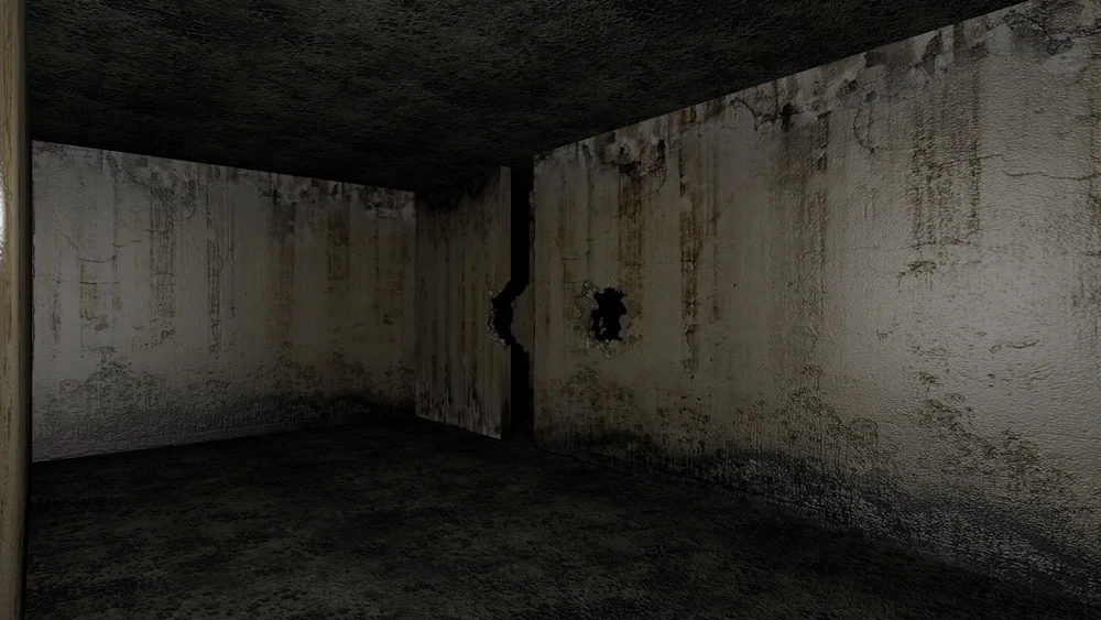Una habitación de hormigón oscura y abandonada en el Nivel 2.3.