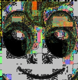 Una cara digital distorsionada en el objetivo de la cámara al fotografiar la entidad.