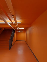 Parte de una Zona Naranja con tuberías y una escalera.