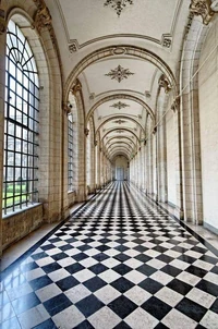 Los pasillos son la zona más común del nivel, ya que estos conectan las demás entre sí. Estos se describen como pasillos lujosos de un castillo europeo del siglo XVII. El suelo de aquí cuenta con un patrón de cuadros blancos y negros, lo que le hace parecer un tablero de ajedrez "gigante". Las paredes son de un color blanco y pueden contar con ventanas. En estas se podrán ver jardines, colinas, montañas, villas y otros paisajes de Los Frontrooms, aunque será imposible acceder a ellos, ya que las ventanas, a pesar de parecer hechas de cristal, son irrompibles. Muy rara vez (con un 0.001% de probabilidad aproximadamente) las estarán rotas, aunque si se salta por ellas se llegará a un nivel de clase 5 o aún peor, al Vacío.
