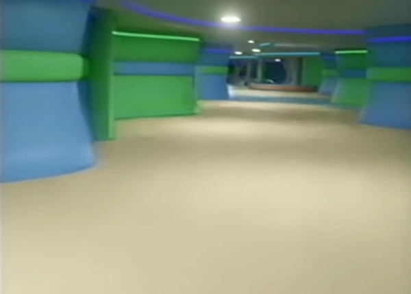 Después de abrirse las puertas, se puede ver una sala muy distinta a la anterior: una especie de vestíbulo principal de un hotel grande, pero completamente desprovisto de recursos. Sus colores son fríos, con tonalidades azules blanquecinas y blancos puros, percibiéndose una temática aún infantil debido a la arquitectura que presenta (las paredes son completamente curvas y hay patrones repetitivos de colores en las columnas que contrastan con los colores de la sala en sí).