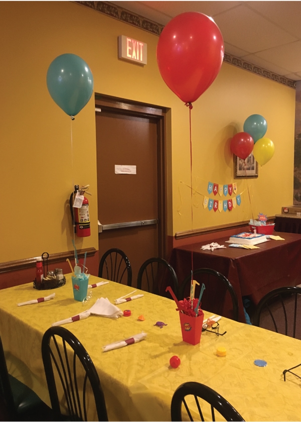 Generalmente, el nivel cuenta con mesas con manteles de colores y sillas, allí se pueden encontrar platos de cartón, vasos de plástico, Raciones Reales, Agua de almendras, pasteles y comida común. Los salones de fiesta que se pueden encontrar en esta zona pueden variar en diseño, espacio, decoración y temática. Así mismo, en esta zona es normal encontrar salas de espera, baños y cocinas.