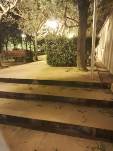 El suelo varía entre zonas de hierba fresca con setos en algunos puntos y cemento en algunas partes, creando caminos que llevan hacia otras áreas. No hay estrellas en el cielo, simplemente hay una gran luna llena constantemente en el nivel (no hay ciclo día-noche). También se pueden encontrar montículos con senderos de tierra, bancos de madera desgastados y mesas de merienda. Incluso hay extraños muros generados de una manera rara que dificultan la visión.