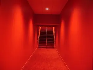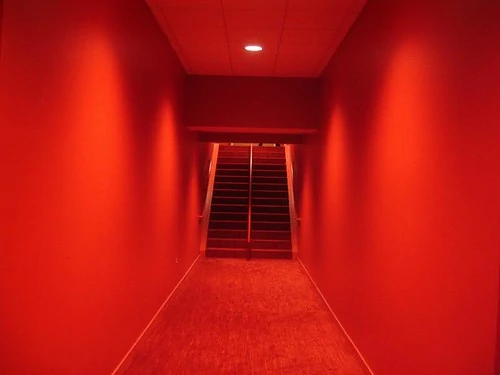 Al igual que su nivel principal, ¡Corre por tu vida!, El hotel está iluminado con un tono rojo neón. Sin embargo, mientras que la luz en Run For Your Life! es proporcionada por señales de "SALIDA", la luz en el Nivel !-! es proporcionada por bombillas regulares de diferentes tamaños y formas, todas montadas en el techo. El espaciado desigual que resulta en que algunas áreas sean más oscuras que otras.