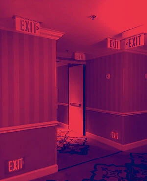 - "Letreros de salida":Los letreros de salida toman la apariencia de los letreros de salida que uno normalmente encontraría en los edificios, aunque una diferencia clave entre ellos y sus contrapartes no inteligentes es que pueden manifestarse tanto como los letreros de salida estadounidenses estándar como los típicos letreros de salida verdes comunes que se encuentran en todo el mundo. resto de The Frontrooms. Estas entidades inducirán una falsa sensación extremadamente fuerte de seguridad y protección cuando uno esté cerca de ellos, lo que hará que se detengan (permitiendo que la horda los alcance) o que sus sentidos se emboten. Este último puede ser muy peligroso, ya que tiende a hacer que las personas intenten usar salidas falsas o peligrosas.