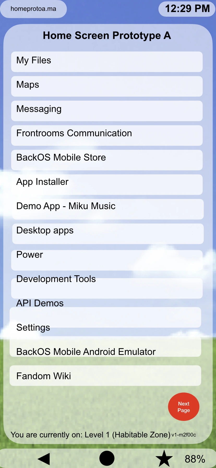 BackOS Mobile Android-Style Home Screen