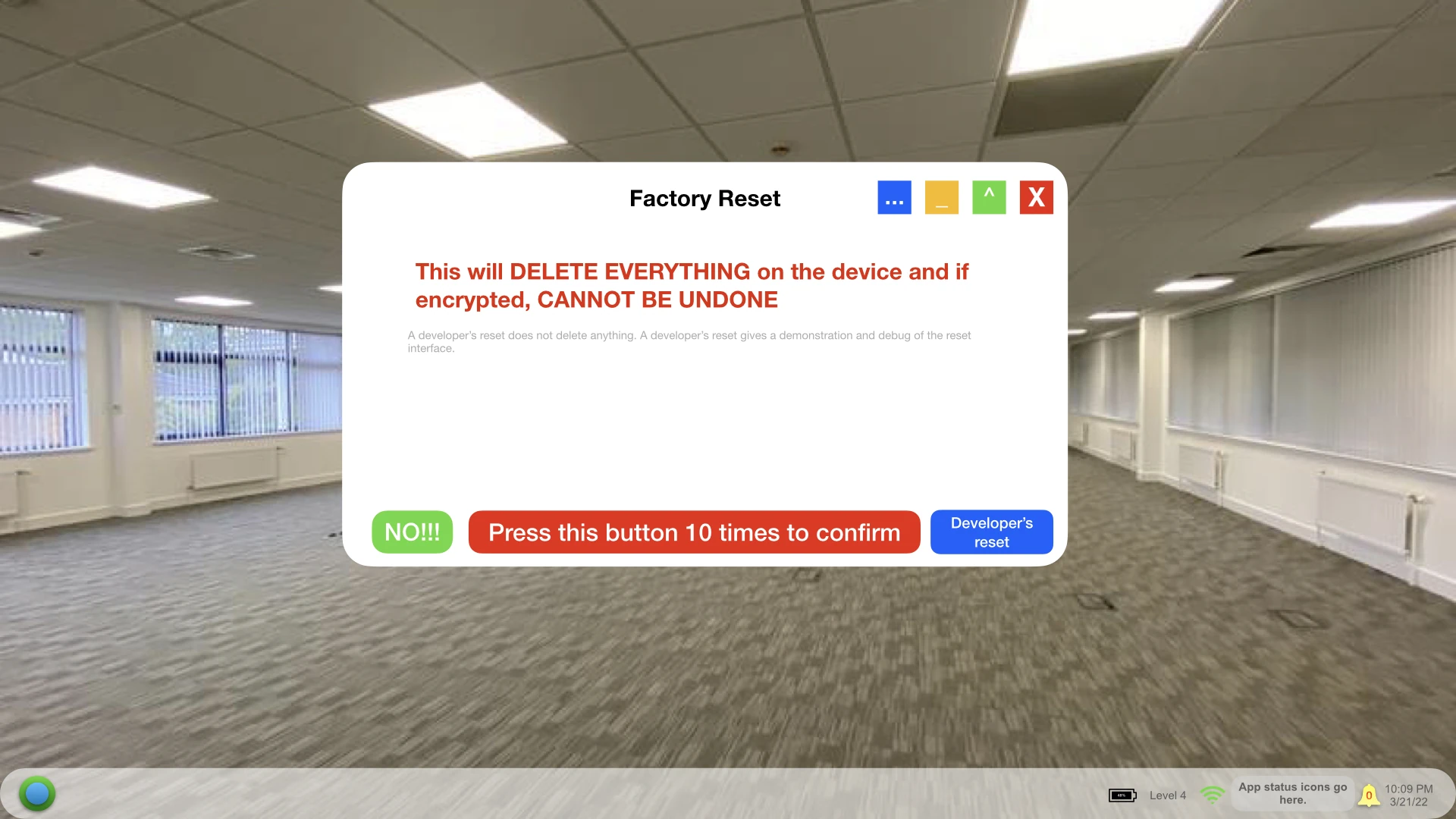 Factory Reset UI