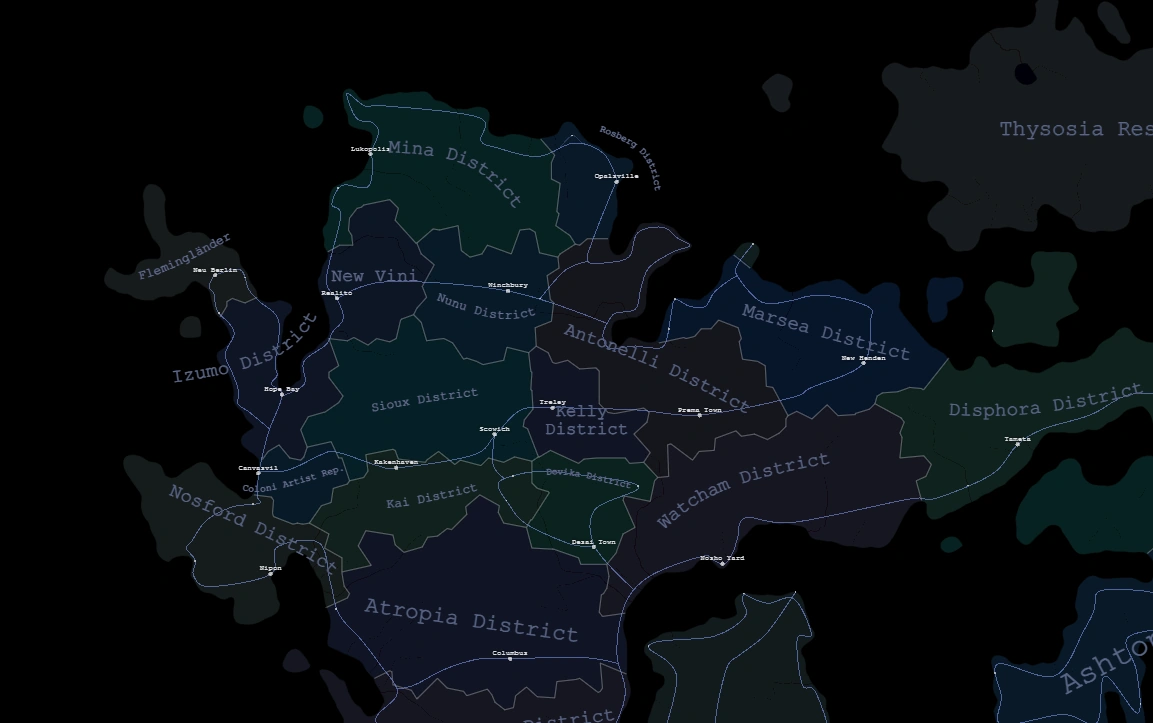 Along with New Almond, Blink and the other Main Nine bases, the group still holds many minor possessions across the first levels. While there are too many to count, some major ones held were pre-Bloodbath settlements, former joint territories like the P.E.A-Colonist holdings or divisional group holdings, listed below:
