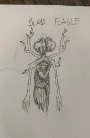 Blood Eagles are anomalous entities in the Backrooms with characteristics akin to that of seraphim from the Christian Bible. Their name originates from the torture method of the same moniker which involves breaking the victim's ribs outwards to resemble wings.
