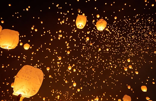 He reached out his hand, attempting to touch the lantern, but was immediately taken aback, retracting the hand. Hundreds, if not thousands of warm lanterns lit themselves, like a great blanket suspended in the air. They each disappeared, one by one, as he slowly reopened his eyes.