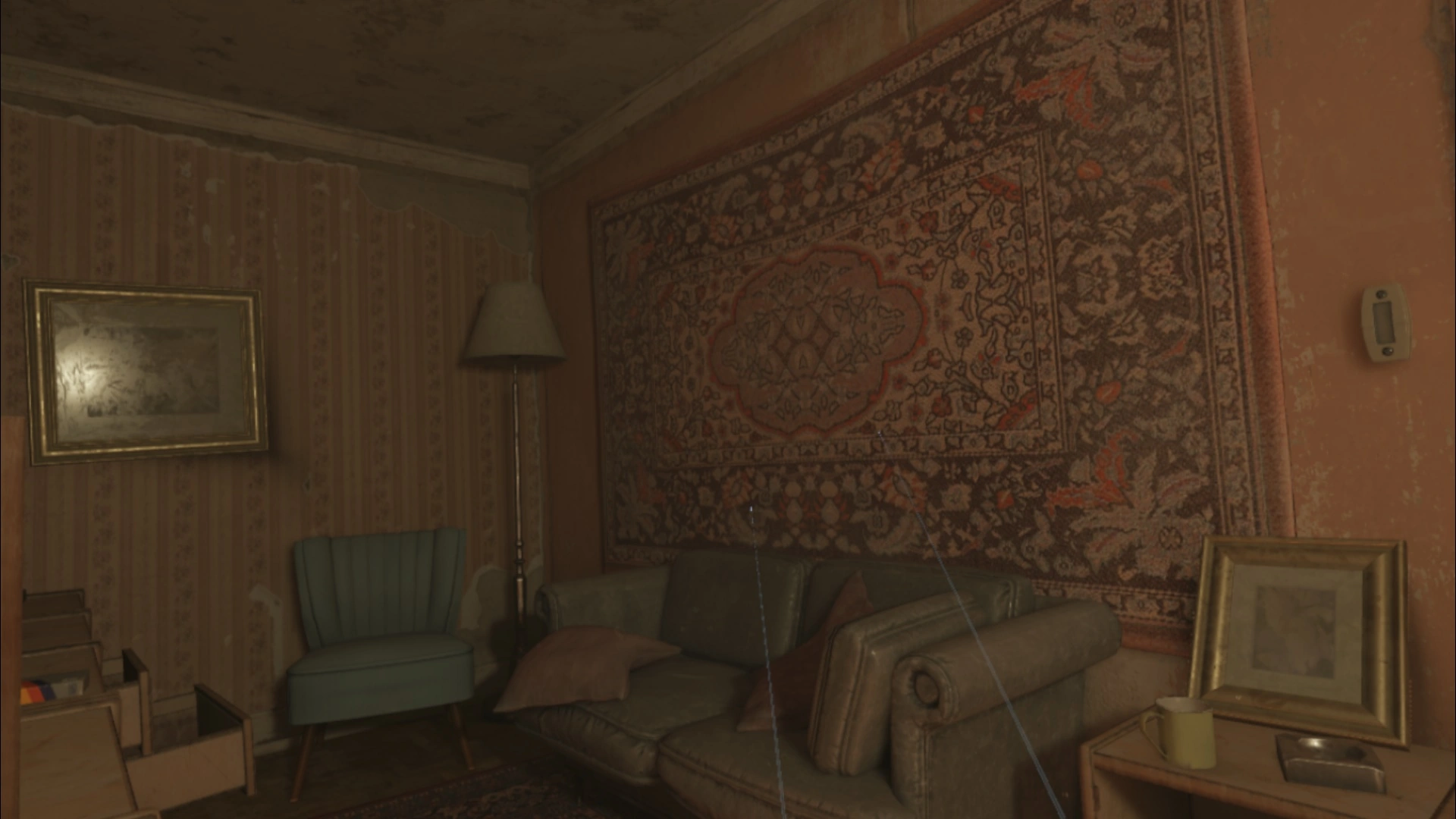 Level ɐ appears to be an old house from the 40s or 50s. The walls and ceiling are starting to get moldy, and spiders are taking over the house. However, one of the 45 bedrooms is not affected, it is the bedroom, visible on the picture.