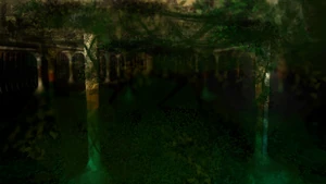 The air is damp and humid, bringing the pungency of decay and minerals. Leaks from unseen cracks form gentle droplets that echo intensely through the sublevel, wich distorts spatial awareness. Structures seem to link a forgotten purpose: broken pipes, submerged areas, and hanging valves hint to a long-abandoned filtration system. Despite its decaying state, the sublevel is strangely pristine.