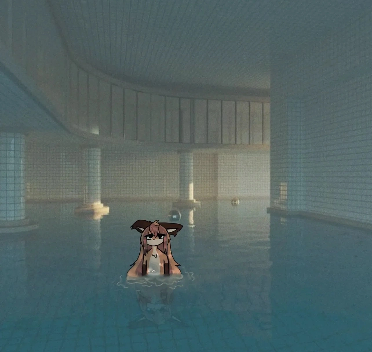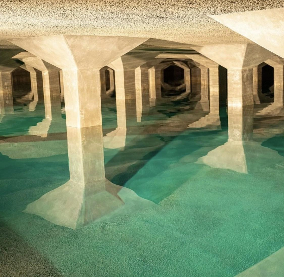 A previous location reclassified as a sublevel, Tabù Cistern (Level 107.1) is a finite complex of frigid cisterns and numerous rooms serving different purposes. Located directly below Level 107. The cisterns of the sublevel are composed of multiple parallel columns embedded into a concrete foundation that forms the pillars, walls, and ceilings; light always casts from the west, the source of which is unknown, as it remains ever unchanging. The water, frigid, occasionally releases chilling agents that form thin sheets of ice on the surface regardless of temperature. Personal belongings, such as fur and clothing, can be seen drifting aimlessly throughout the cisterns, and they seem to lack any identifiable owner.