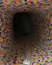 Segment 1 is a maze of small, dark tunnels. These tunnels are lined with small tiles of different colours on the entirety of the walls and floor. The tunnels in segment 1 can range from 100 meters to around 30 kilometers in length. Wanderers in Segment 1 will feel a eerie feeling of deja vu, as if they have been to the area before. If a wanderer spends too long in segment 1, they will start to see and hear hallucinations of their lives back in reality, and after around 6 or 7 hours they will lose their humanity and begin smashing their head into the wall, killing themselves. As mentioned above, Segment 1 can also change its tunnels and can can cave in Wanderers and suffocate them to death, or crush them. When a wanderer reaches the end of a tunnel, the floor will begin to fade and they will no-clip into Segment 2. There are no entities in this level, a stark contrast of the horror yet to come.