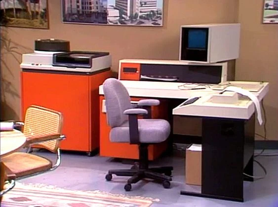 The most infamous image of Level 153. Level 153, known colloquially as "Antique Workspace," lives coexistent within an indoor office building of indeterminate size, curiously lacking any outdoor openings such as windows. The Level's architecture visually resembles the late 1980s to the mid-1990s, comprised of peeling dull-colored wallpaper, generally addorned by a variety of wall decor emergent from the same period, antiquated drop ceilings, evenly adorned with a myriad of yellowing ceiling lights, and worn, dusty carpeting, on occasion interrupted by cracked porcelain tiles. Evenly spread across Level 153, as its name denotes, are diverse work site offices' standards. Such areas typically embody an office chair, a variedly-sized work desk, various office supplies adorning its top, and antiquated computer terminals prevalent during the 1990s. Due to the pervasive terminals & related appliances, wanderers has been theorizing Level 153 to have once belonged to a firm specializing in software development. Furthermore, despite the Level's computer terminals being in moderately good condition, they are known to be prone to file corruption; consequently, they are infrequently used, with colonies instead opting to import BACK-NET terminals from external levels. The Level's original terminals connect to an incognito location for the mainframe.