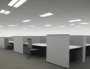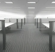Level 4.3 is an endless office filled with cubicles, with several hallways connecting different areas together. These cubicles contain black office chairs, pencils, pencil sharpeners, erasers, tables, paper, and computers (though not all of them are functional). Food and drinks can be found in refrigerators (including Almond Water), making Level 4.3 ideal for finding resources. In certain areas of Level 4.3, a multitude of load-bearing walls can be found grouped closely together. These walls can be broken, but breaking them does not appear to have any effect on the Level's structural integrity as a whole. A white fog also subsists within this level at all times, the source of which is unknown.
