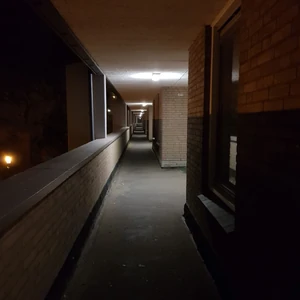 Doors alternate on either side of the passageway, with intervals between them ranging from close concurrently to far separated. Entryways can remain locked and require a key or key card to access the interior. It is relatively straightforward to open an impenetrable gate by weakening the lock. However, additional doors cannot be damaged or extended due to vital materials or unknown means. At first glance, a room appears to be comparatively compact and seems to receive little use. But upon closer inspection, it discloses itself as non-Euclidean in nature, allowing absurd sizes to be fitted inside without affecting the rest of the accommodation, which usually constitutes an Euclidean space. As a result, the interior can appear much more immense or extensive than the construction itself. Some buildings incorporate chambers with openings and curtains visible via a hallway, permitting one to glimpse inside.