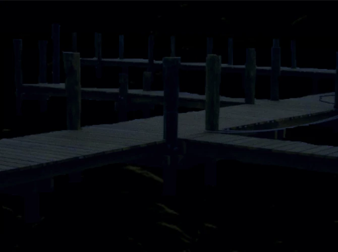 Although the docks only occupy a small portion of space amongst the vastness of the body of water, several small row boats can be found attached to the poles holding the docks in place, where exactly these boats come from is a mystery, however, as they will appear in areas of the docks that are not being actively observed by human life. Several wanderers who have used these boats to explore the outskirts of the level have found various unusual structures, these include: