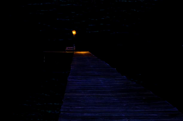 Level 7.5, also known as "The Docks", is a set of pine wood docks resting on and below two presumably infinite bodies of pitch black fresh water. Light posts can be seen emerging from the bottom body of water and along the sides of docks that emit a constant bright yellow light. This along with lanterns occasionally resting on the docks are the only sources of light, any other sources of light brought onto Level 7.5 will cease to produce any illumination. Traveling far enough into the level one may stumble upon a much larger dock containing several benches and trashcans as well as the occasional bottle of Almond Water. These areas will be referred to as "Resting spots" and where one can often find other wanderers, colonies, and outposts. In addition to light posts, nightshades can also be seen growing from the water. Despite the bodies of water having a near infinite size, the docks are finite, covering a space of around 20,0002 miles, or 32,1872 kilometers.