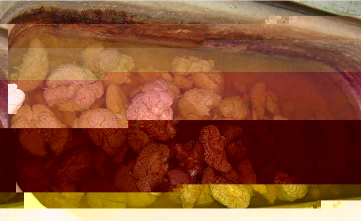 Tubs like these can be found all throughout the rooms of Level 868's complex. Each tub is filled with exactly 6800 fluid ounces of Cerebro water, submerged within the Cerebro water are the brains of humans and entities. The photo is distorted due to the levels anomalous activity.