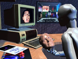 The Robot is A yellow mannequin + robotic like entity which lives in the level region of "Pink Door" the robot is A neutral entity since he's very cautious about humans sometimes when they are armed with weapons, but he's mainly friendly to humans so that he can both protect and trade you with interesting items like A immortal baseball bat, A piece of wood which can increase your hormones to over 1000%, A shell that can turn you into A walking clam, and many more interesting items which he can give to you. the robot lives in A cabin that is home to his 2 pets named "Ronald McDonald" the wooden duck and "Brother Of Alabama" the grizzly bear, which all have the ability to kinda talk. the robot if provoked can be very dangerous, since he has super strength and has the ability to tear your legs, arms, and mutilate your face off with A single hand. to escape him if he was provoked, you would have to outsmart him which is unreliable and difficult since he is very smart, and after doing that you can shut him down which can make him last for 5 minutes, enough for you to escape him, and after that you would have to evacuate the region level, since even though he's in A stasis, he still knows where you're at.