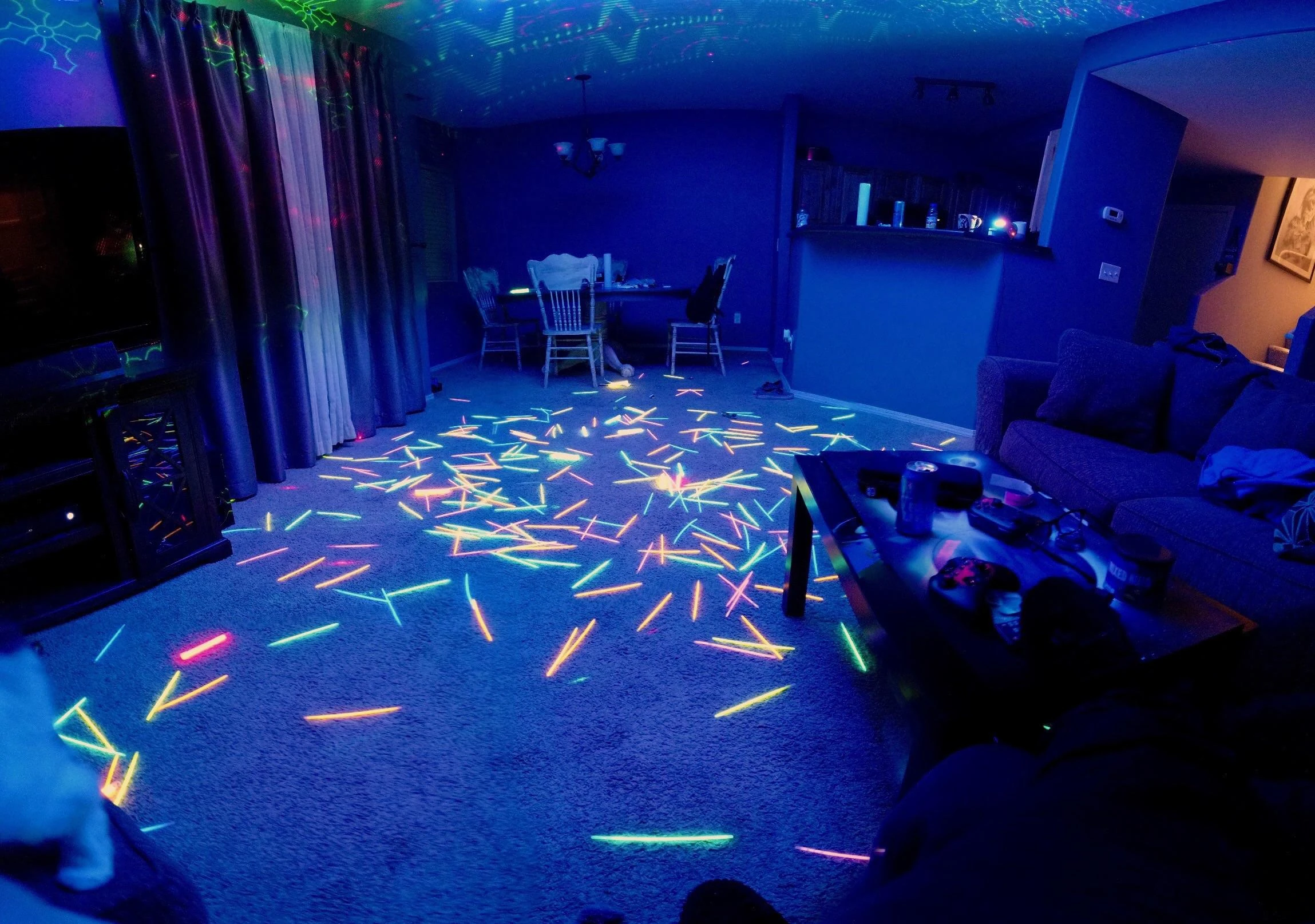Level Glowsticks in the night, before a huge pile of glowsticks rained into the house.