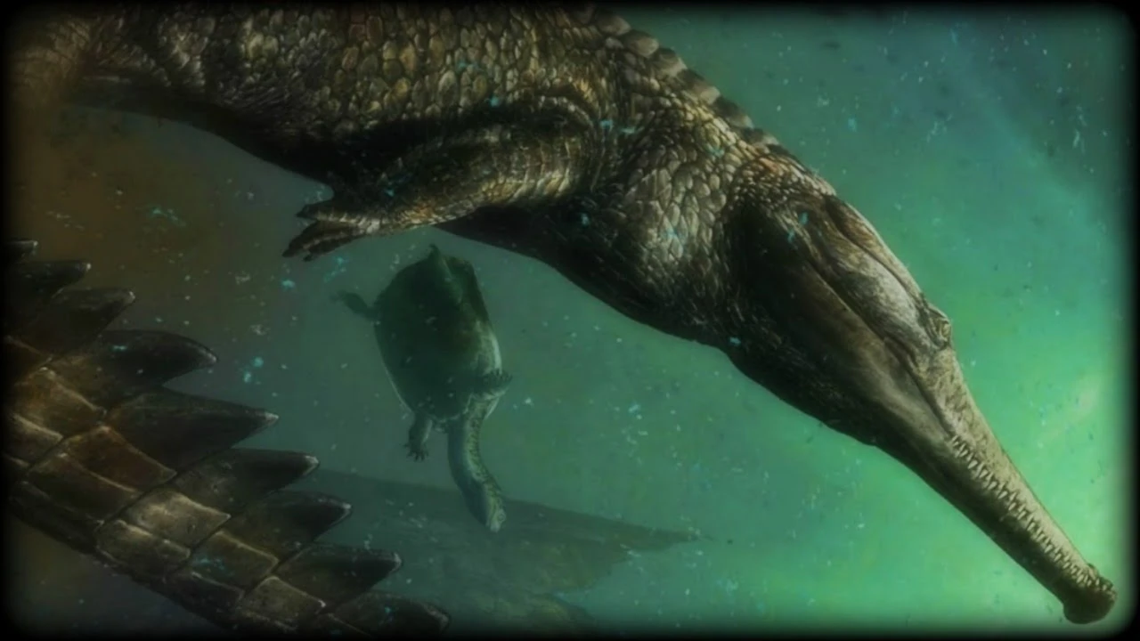 Pachycetus, also known as walking whales, are dog-sized amphibious mammals which are able to hunt in a manner similar to crocodiles. They will wait in ambush at the edge of rivers and lakes, and clamp their jaws down on small dinosaurs looking for a drink. They are also able to feed on fish much like others, and can make sharp turns when swimming underwater or run onto land to avoid larger aquatic predators. These creatures also communicate across long distances using whale like whistles and hums, which they use to find and attract mates.