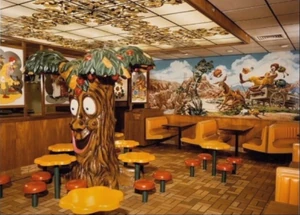Footsteps echo faintly on the tiled floor, then fade. The air has a slight scent of old plastic and clean surfaces, suggesting the space was sanitised long ago and left sealed. There is no background music, no distant chatter, no mechanical noise. The silence sharply contrasts with the visual clutter of the décor. As the maze goes on, the repetition becomes more noticeable. The same murals appear with slight colour changes. The exact tree figures keep appearing, their expressions unchanged. Seating arrangements are so similar that individual rooms lose their uniqueness. Movement starts to feel circular even when the paths don’t actually loop. The sublevel does not seem hostile; it feels performative. Everything is bright, friendly, and carefully arranged, yet completely lacking in purpose. The infinite maze maintains the look of joy without allowing it to happen, stretching endlessly in artificial warmth, ensuring that every path leads to more colour, more smiles, and the same unchanging decorative cheer.