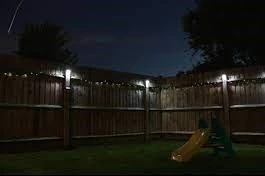 Small exterior lights are mounted at regular intervals along the fence posts. They give off a soft, white glow that evenly illuminates each yard without casting strong shadows. The light remains steady and does not reach far beyond the immediate area, creating isolated patches of visibility surrounded by darkness. Above the fences, the sky is dark and empty, with no stars, clouds, or moon to provide depth or direction. Sometimes, the maze opens into slightly wider yards where familiar objects are placed. A plastic slide leans against the fence. A swing set stands still, its chains perfectly motionless. These structures appear intact and clean, positioned as if waiting to be used. They repeat throughout the maze in subtle variations, sometimes mirrored or rotated, but always solitary and unused. Sound behaves oddly in the open air.