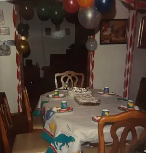 The Afterparty is a series of interconnected rooms containing many party supplies, each resembling a classic children's party venue. Just as mazelike and labyrinthine as its parent level, this sublevel is eerily devoid of any sentient presence due to certain phenomena which shroud its ever-shifting halls, exuding a strange atmosphere of melancholy loneliness comparable to the innate and silent emptiness of the house after the party has ended and the guests all gone home. Dozens of party hats sit, unmoving, on cold and unused wooden tables; and from the chairs which nobody sits on there are slung colourful helium balloons, floating straight up in the air, never seeming to droop nor lose their gas, like a breath inhaled but not yet released, waiting for hours untold to be exhaled.