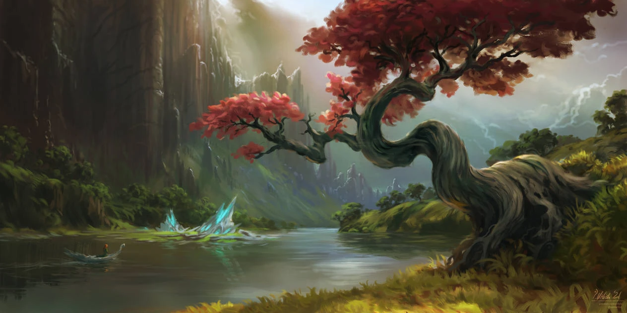 Artwork by Somatonic. A tree, near one of the rivers of Lunae Zonam.