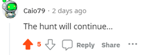 那则GO FOR PUNCH!的证伪被留下了。惋惜的评论也一条未消。但唯独,唯独那篇振奋人心的,将所有人的希望重新点燃的,将谎言彻底推翻的帖子消失了。而本应与它一起离去的回复却留下了,使得这整个页面变得戏剧。人们在已经消失的希望下为其欢呼,为扳倒了似乎早已是板上钉钉的事实喝彩,为没有任何事物留下的空壳庆祝。或许还会有一些在它死去前有记录的视频中能再见它一面,勉强能证明它存在过。可形势已经改变了。所有重燃的一切都是幻觉。