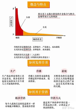 - 信息与物质的丰饶正在迫使营销人员改变营销路径,长尾效应表明,从人们需求的角度来看,大多数的需求会集中在头部,而这部分我们可以称之为流行,而分布在尾部的需求是个性化的,零散的小量的需求。而这部分差异化的、少量的需求会在需求曲线上面形成一条长长的“尾巴”。在丰饶经济学出现,或者说信息/物质“丰饶”以前,媒体营销人员的主要目标是,创造盈利丰厚的轰动性“流行”产品,然而丰饶经济学则证明了长尾效应的另一个事实,即在数量上, 将所有非流行的市场累加起来就会形成一个比流行市场还大的市场。在市场营销方面,这促进了信息生产者——营销人员将营销重点,从原有的流行,转移到一个一个的“利基”。市场定位和目标市场被放置到了营销学前所未有的重要地位,这将推动“利基”市场,“定制化”市场等小型市场及相关产品的高度发达和易得性的显著提高,推动以目标市场消费者为核心的顾客满意策略的发展;而在传播学领域,信息——媒介的垄断在利基市场和营销策划方向的转变下遭受到了冲击,决策权随着营销方式的变化,从统治阶层的精英开始向消费者转移。
