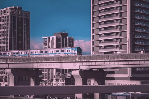早晨七点的阳光清凉,在八重樱与羊蹄甲的树梢,高架铁路蜿蜒,后厅地铁走行着。驶至站台,那将四散的层别相连的列车,终于停下。