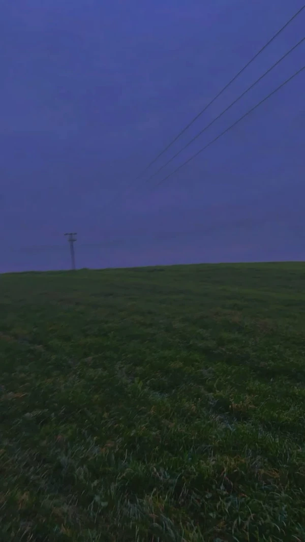 暗紫色的天空,远处孤立的电线塔,分割界限的地平线,就是梦呓的全部。拂过地面草尖的下一刻,风浪缓缓划过原野。让整片暗绿化作虚幻的涨潮,一次又一次扑向来访者的足底,拥簇起微小的波浪,就像水落向礁石,不痛不痒。随浪摇来的青草屑沾染着熟悉的土腥味,没有清香,也无微甜。